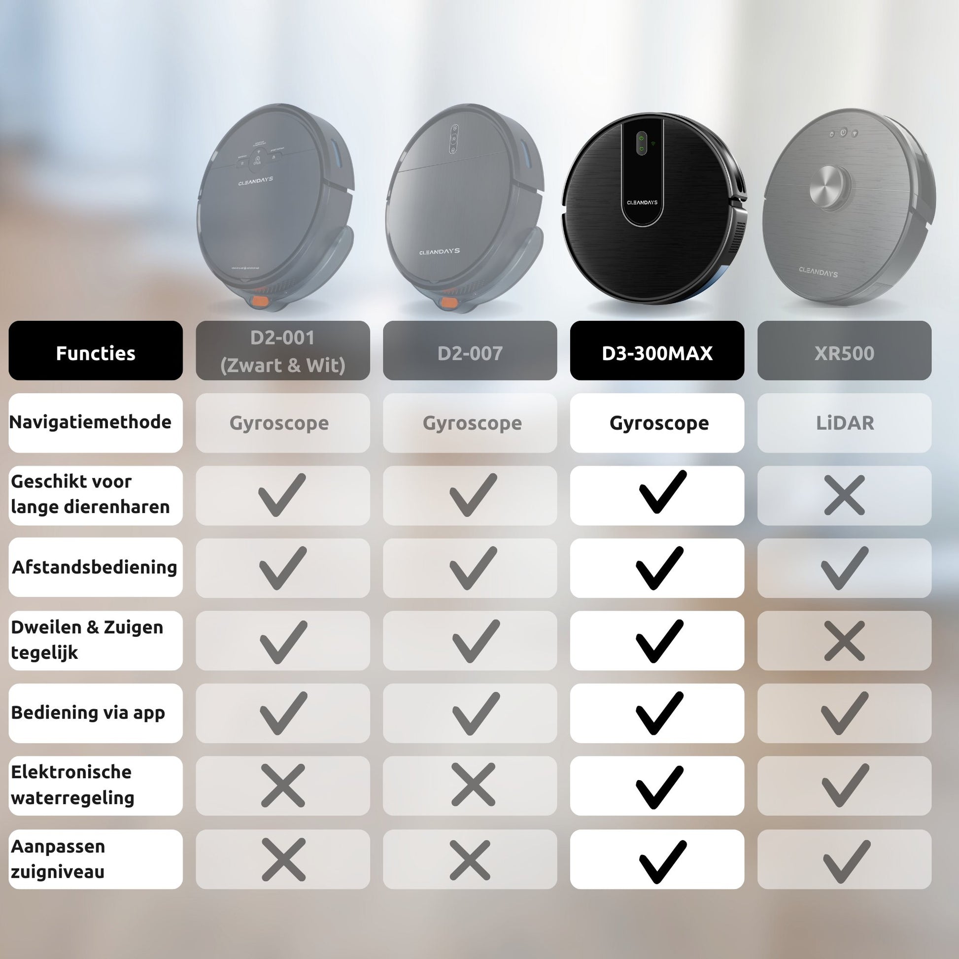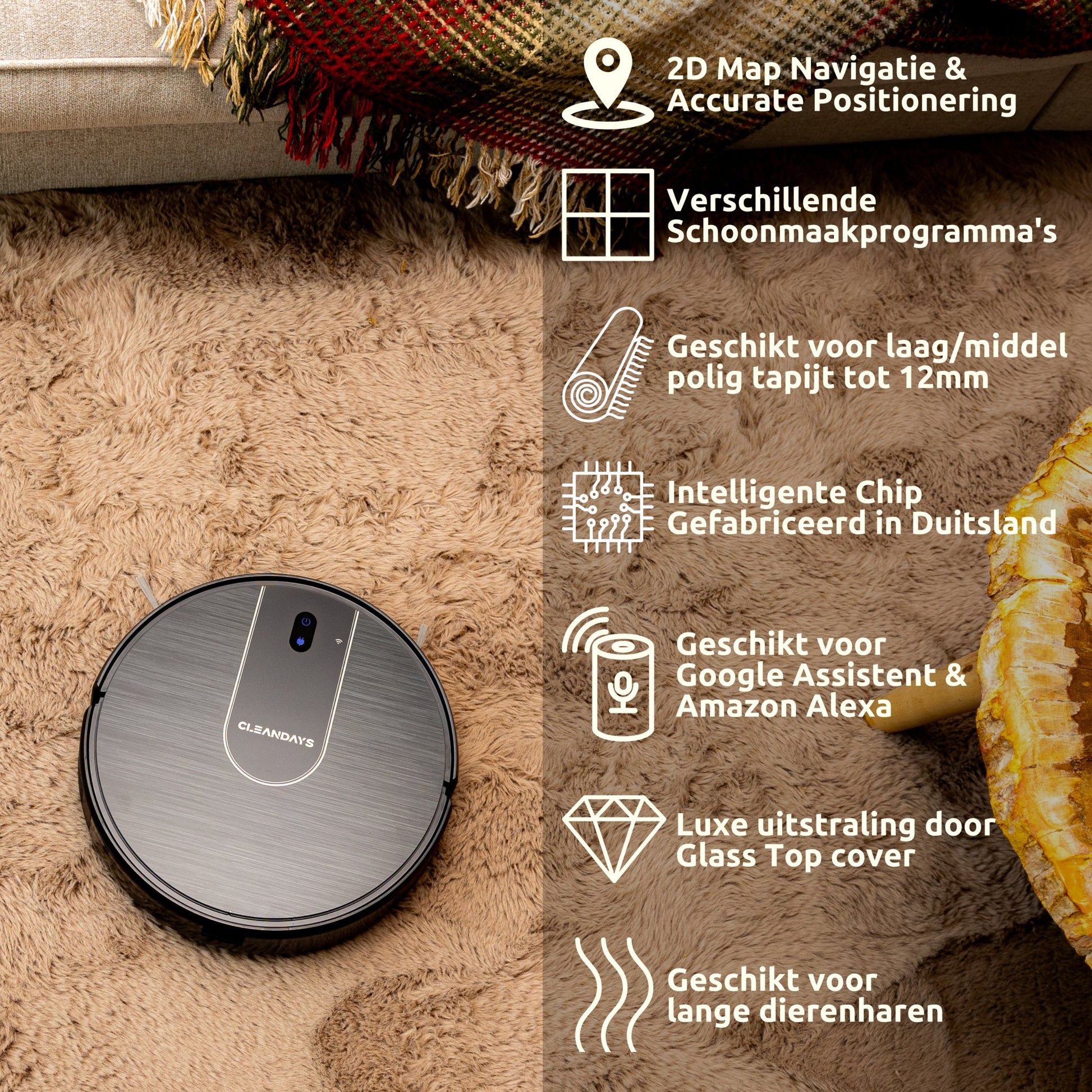 Maak kennis met de CleanDays D3-300MAX Robotstofzuiger met dweilfunctie - jouw nieuwe partner in schoonmaken voor een moeiteloos schoon en fris huis!
